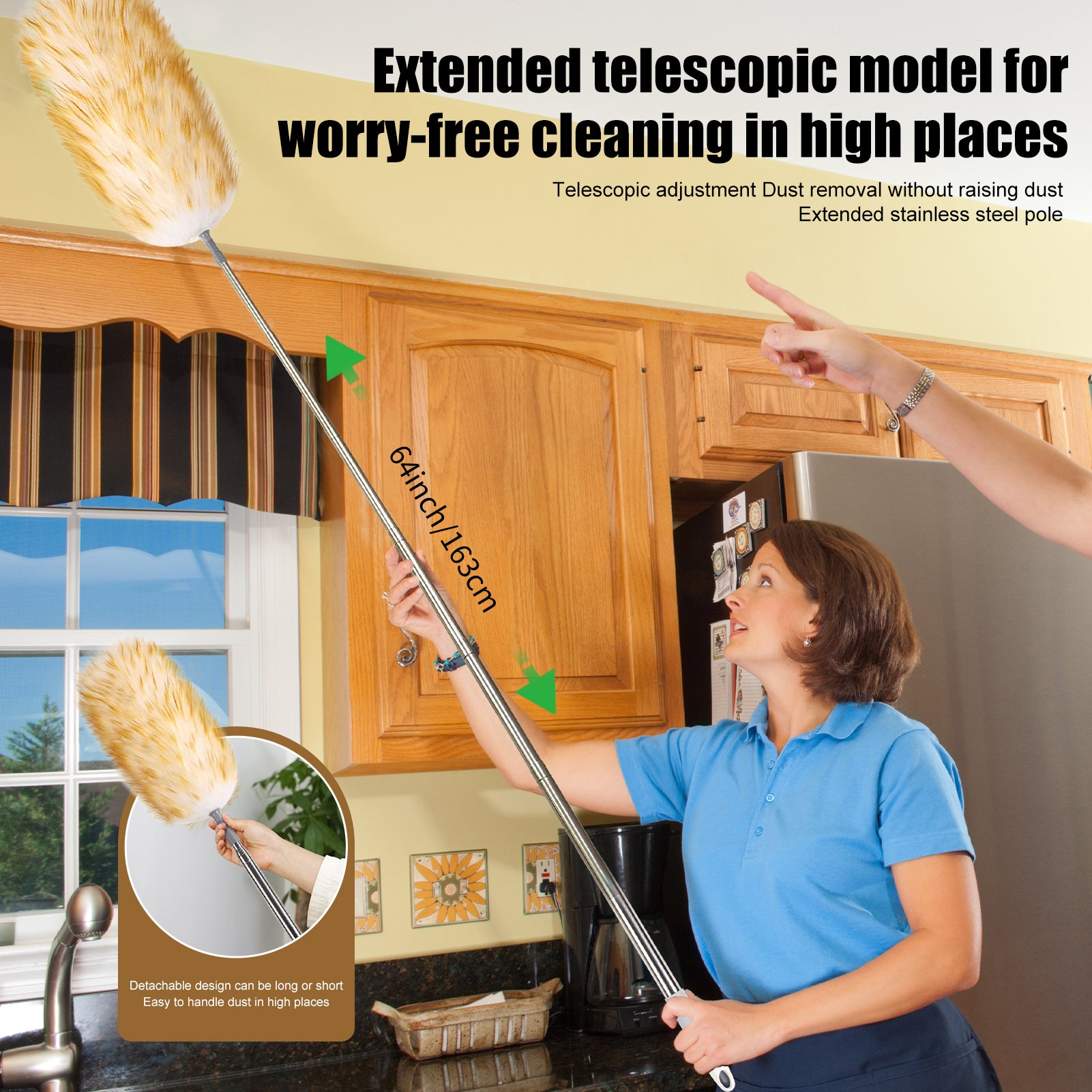 Scalable wool cleaning duster, a household dust sweeping tool, compact and convenient to retract